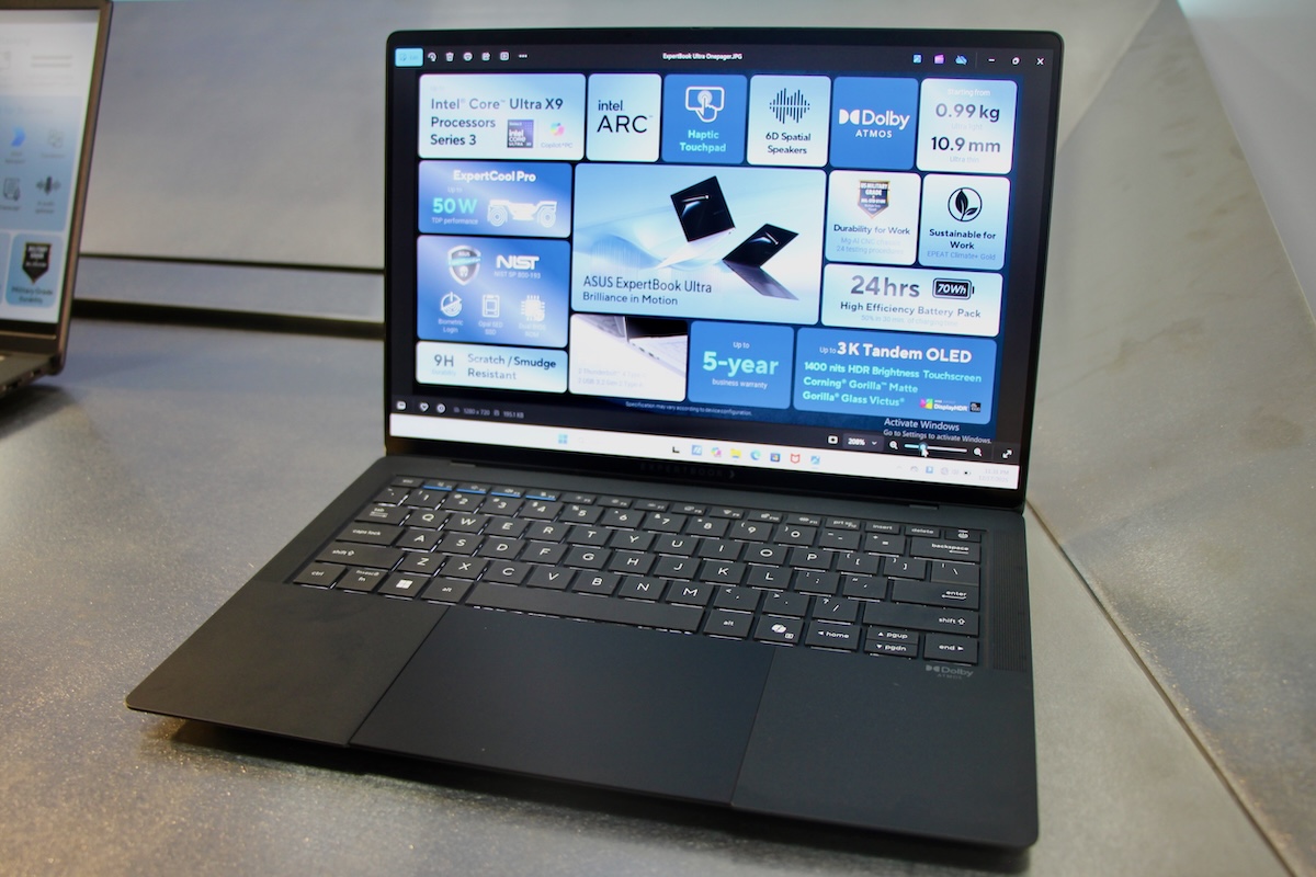 華碩在商用 ExpertBook 系列獨立出全新 ExpertBook Ultra(B9406)筆電,以陶瓷與鎂鋁合金打造輕巧機身重量僅僅 0.99kg、厚度薄至 10.9mm,採用防眩光、抗指紋的 3K Tandem OLED 觸控螢幕。內部最高搭載 Intel Core Ultra X9 Series 3 處理器,NPU 算力達到 50 TOPS,結合微軟 Copilot+ PC 功能與 ASUS MyExpert,支援 AI 驅動的多工處理、高運算需求。ExpertCool Pro 先進散熱系統支援最高 50W TDP 的散熱設計,確保效能穩定輸出。安全性方面,ASUS ExpertGuardian 藉由 Secured-core PC 技術、生物辨識驗證,以及企業級 BIOS 與驅動程式支援服務,全面強化企業環境中的資料安全保護。