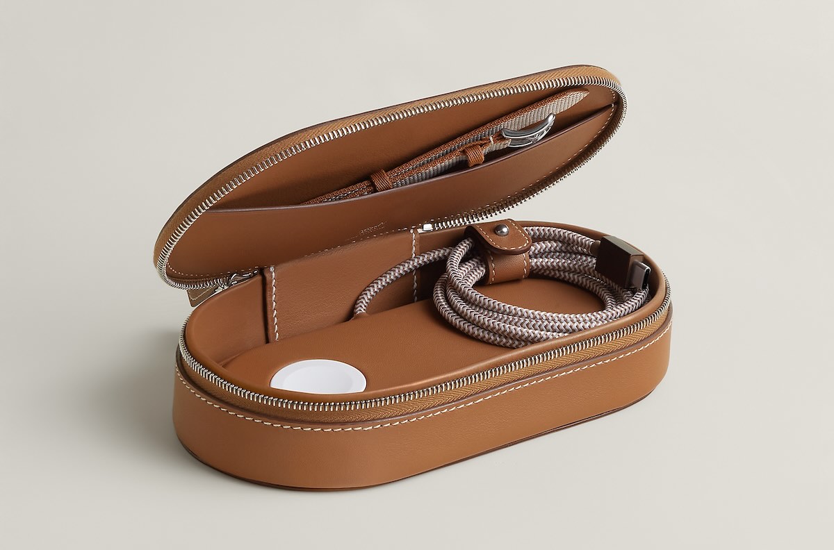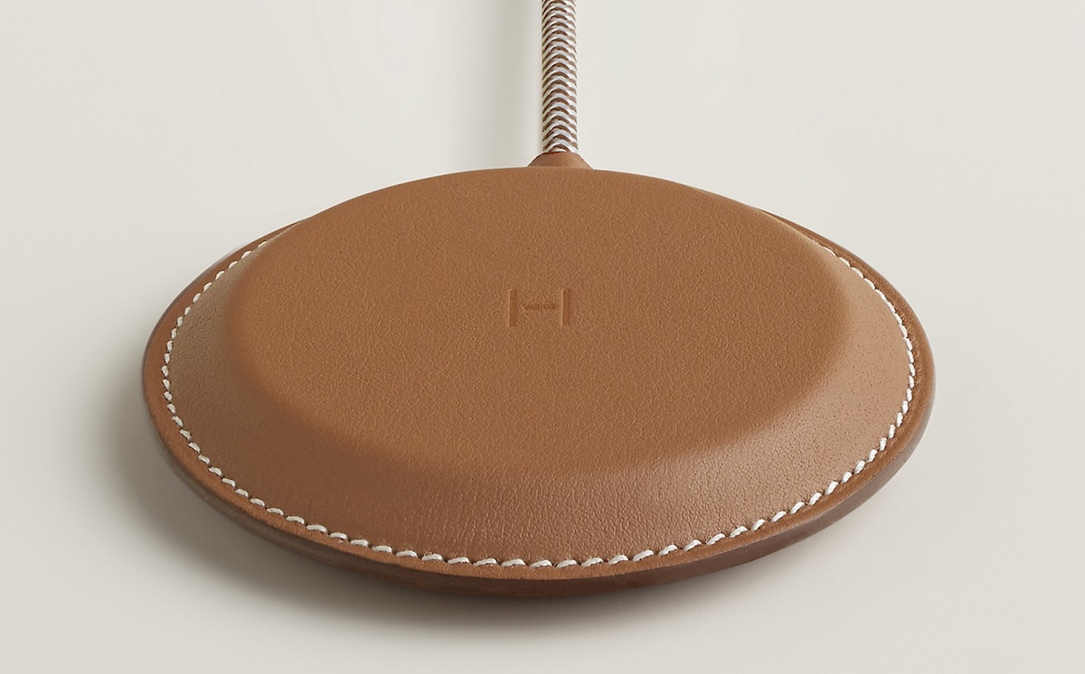 據 Hermès 官網說明,每款充電產品都在磁吸充電位置上設有 H Logo 以方便裝置對位,並以 Swift 小牛皮精細包覆,搭配馬鞍式縫線工藝。